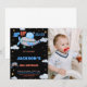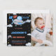 Invitations d'anniversaire de l'avion Brown bleu noir avec photo