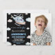 Invitations d'anniversaire d'hélicoptère gris noir avec photo