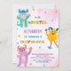 Invitations d'anniversaire Monster rose violet