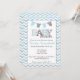 Invitations bleues et grises de baby shower de corde à linge pour un garçon !