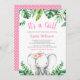 Conception adorable d'invitation de baby shower d'éléphant de fille comportant le feuille d'aquarelle et l'éléphant tropicaux de bébé.