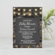 Invitations de baby shower de tableau de Camo de chasse - caractéristiques un arrière - plan imprimé de camouflage de chasse avec des éléments de conception des lumières de tableau et de ficelle. Voyez la pleine collection assortie de conception à cette page.