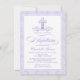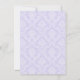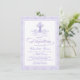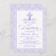 Invitations de baptême violet de filles avec croix perle violet et écriture élégante sur un joli arrière - plan damassé lavande. Cette élégante invitation au baptême lavande violet damassé est facilement customisée pour votre événement en ajoutant simplement vos détails dans le style et la couleur de police, et le libellé de votre choix.