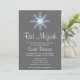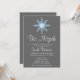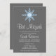 Une invitation à la Bat mitzvah tendance aux flocons de neige bleus et gris. Montré en gris, blanc et bleu. Personnalisez facilement avec vos détails de fête.