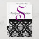 Invitation Mariage damassé avec Monogramme violet.Conception de la disposition par Elke Clarke © 2009. Graphiques sous licence pour use.com et WhiteWhimsicalWeddings.blogspot.com. Customisez avec vos noms monographiques et couleurs mariages. Ajoutez toutes vos informations mariages au verso de la carte en utilisant les invites de menu faciles à utiliser de Zazzle.