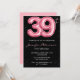 Invitations de Black Pink 39e anniversaire Ballons Glam