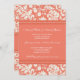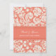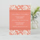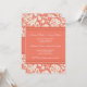 Invitations de partie de fiançailles en pêche élégante orange et crème outre du motif floral classique blanc de damassé. Entièrement personnalisable avec vos détails de partie de fiançailles. En outre disponible dans un éventail d'assortir des produits de mariage.