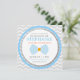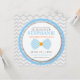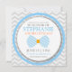 Invitations d'un bébé de coutume comportant la grande conception de cravate d'arc et les rayures diagonales dans la combinaison de couleurs bleue et orange avec le charbon de bois