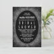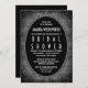 Black and Silver Art Déco Bridal Shower Invitations - présente une parties scintillant en argent confetti faux ou faux feuillard sur un arrière - plan noir sur le devant. Le dos est muni d'un monogramme sur le fond arrière. Voir la collection complète de correspondances trouvée sur cette page.