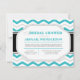 Invitations de douches nuptiales avec un motif de zigzag de chevron en alternance turquoise et gris moderne et tendance, et une typographie turquoise et grise. Carte Postage et Merci correspondants (articles achetés séparément) :