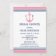 Invitations de douche nuptiale bleu marine et rose avec ancre cardiaque monogramme.