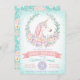 Bleu unicorne rose et turquoise invitation à la douche bébé avec jolie licorne pastel aquarelle et fleurs sur un bel arrière - plan bleu turquoise brillant ombre. Ces invitations pour les douches pour bébés à la licorne sont facilement customisées pour votre événement en ajoutant simplement vos détails.