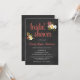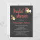 Invitations modernes de mariage en tableau noir - Fête de l'mariée de bouquet de jardin floral. Bouquet lumineux et gai de fleurs abstraites jaunes et blanches avec rose de thé et accents d'orange d'automne. Typographie décontractée amusante et féminine dans la calligraphie lilas sur tableau noir gris ardoise. Il suffit d'ajouter le nom de la future mariée, la date, l'heure et les détails, et de personnaliser les informations du registre des épouses. Parfait pour les thèmes ruraux ou rustiques des mariages agricoles. Cliquez sur Customiser pour modifier la taille, le style ou la disposition et créer vos propres invitations wedding showers abordables. Certains éléments contenus dans ce design sont sous licence commerciale CreativeMarket, droits d'auteur de Mia Charro, et ne peuvent être utilisés ou reproduits sans autorisation. Thème Mariage botanique © 2013