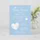 Invitations élégantes de douches pour bébés bleu pastel et blanc. Des invitations de fête avec peu de coeur blanc. Conception neutre adaptée aux garçons et aux filles. Customiser la forme découpée. Couleur arrière - plan personnalisée. c'est-à-dire aqua, jaune, bleu ou rose. Belle typographie stylisée avec symboles d'amour vintages. modèle personnalisable avec RSVP et ligne de registre. De jolies cartes de douche pour votre petit prince ou princesse. Conception de papier pour les femmes enceintes / maman à être.