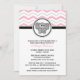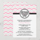 Des invitations élégantes et mignonnes à la Baby Shower, conçues dans un motif de chevron assorti de couleurs roses, grises et blanches, avec un adorable petit éléphant gris, et imprimées sur mesure avec vos détails de fête.