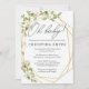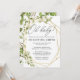 Invitations de douches pour bébés géométriques et vertes - super mignonne et moderne. Ces invitations comportent des feuilles peints en vert aquarelle avec des accents d'or. Parfait pour un baby shower élégant.