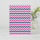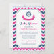 Invitations de douches pour bébés à thème nautique personnalisées en bleu marine foncé élégant et moderne, rose fuchsia et blanc joyeux chevron zigzags motif avec roue et bannière de navire. Personnalisable avec votre texte, contactez-nous pour demander un changement de couleur.