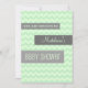 Invitations personnalisées de douches pour bébés dans élégantes et modernes brunes pastel vert menthe, gris fusain noir et blanc vintage chevron zigzags raypes motif. Personnalisable avec votre texte, contactez-nous pour demander un changement de couleur.