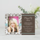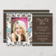 Ajoutez votre photo et votre classe d'information à l'arrière et à l'avant de ces annonces de graduation photo personnalisées bleu et marron. Supprimez tout texte à l'avant du dos pour le laisser vide. Design © Chrissy H. Studios LLC