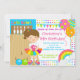Commencez votre fête d'anniversaire de fille outre de la droite avec notre grève lumineuse et colorée mignonne vers le haut d'une certaine invitation de fête d'anniversaire de bowling d'amusement comportant une fille mignonne de brune à un allié de bowling avec des boules roses et oranges de ballon et de bowling réglées sur un arrière - plan mignon de pois avec l'étamine jaune, vert, de turquoise de bleu, rose et orange. Le dos de l'invitation comporte une couleur pourpre coordonnée. Entièrement personnalisable par vous avec votre information. illustrations de ©JW