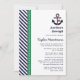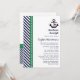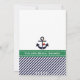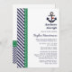 Invitations de douches nuptiales d'ancre bleu marine et vert avec thème nautique. Bordure rayée marine et blanche avec un motif imprimé en ruban piqué vert et blanc et une ancre avec une étoile et un coeur rouge accrochés à une corde. Ce design mignon et appétissant est parfait pour un wedding shower de printemps ou d'été sur le thème de l'océan ou de la plage. Customisez l'avant et l'arrière de cette carte pour dire ce que vous voulez. Oeuvre © Chrissy H. Studios, LLC.Tous droits réservés.
