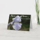 Belle Bleue Iris Bridal Shower Invitations. Les gouttes de pluie sont sur les pétales assez délicats avec centre jaune et bourgeon de fleurs et arrière - plan flou. Avec le texte en blanc, Douches d'Amour, Vous êtes Invité. Laisser le libellé sur l'avant ou la carte ou personnaliser. Personnalisez l'intérieur de la carte avec vos détails spéciaux de l'événement. Photographie originale et design de versets par TamiraZDesigns.