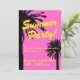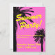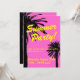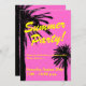 Invitations de fête d'été Neon rose et palmiers. Invitations sur mesure pour les fêtes d'été chaudes sur la plage comme les anniversaires, les diplômes, les réunions, les retraites etc. Texte faire-part personnalisable et couleur arrière - plan. Un palmier tropical aux couleurs ensoleillées. Rose chaud et noir.