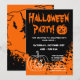 Invitations de fête d'Halloween avec citrouilles sculptés et sorcière sur un balai invitations personnalisés avec design éffrayant. Texte faire-part personnalisable et couleur arrière - plan. Joli design noir et orange avec des illustrations effrayantes. Le moyen le moins cher de faire vos propres prospectus.