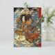 Invitations de Kuniyoshi Samurai. Bois Ukiyo-e de Edo Period Japon. Utagawa Kuniyoshi a conçu quelques-uns des tableaux samouraïs les plus vibrants et impressionnants de la période Edo. Sa représentation de la Shimamura Danjo Takanori montre le samouraï en armure, brandissant sa naginata, tout en chevauchant les vagues de la mer sur le dos de deux crabes bleus. Le samouraï a été frappé par de multiples flèches, mais se bat férocement avec des vagues et des crabes qui s'élèvent en arrière - plan. Un grand cadeau pour les amateurs d'Utagawa Kuniyoshi, de peintures samouraïes et d'art japonais.