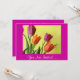 Attrayant invitation à la fête florale avec une belle photo d'un bouquet de tulipes orange et violet. Convient pour les anniversaires, mariages, retraites, fiançailles ou toute autre occasion spéciale. Pour customiser, il vous suffit d'ajouter vos propres détails dans les cases à droite.