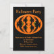 Cette formidable invitation à la fête magnétique présente un ovale orange avec six corneilles. Chaque corbeau a des yeux jaunes avec des élèves noirs et des ailes étirées. Les corbeaux volent vers l'autre formant une forme ovale. L'arrière - plan est noir.