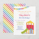 Venez vous balancer, glisser et jouer ! Ce sera une journée amusante ! Si vous organisez la fête d'anniversaire sur une aire de jeux intérieure, invitation vos enfants invités avec cette invitation colorée avec palette de couleurs arc-en-ciel. Il dispose d'un équipement de maison de jeux avec un toboggan et une échelle et des drapeaux colorés de bunting accrochés au-dessus. Personnalisez facilement avec les détails de votre fête.