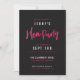 Invitations modernes de fête de poule rose et noire avec des accents rose texturé et du texte gras.