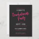 Invitations de la fête de bachelorette moderne rose chaud et noir avec des accents rose texturé et du texte gras.