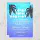 Invitations de dîners de répétition pour palmiers - avec un arrière - plan d'aquarelle bleu mauve et malibu avec palmiers et lampes à cordes. Consultez les produits de design correspondants dans la collection figurant sur cette page.
