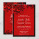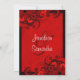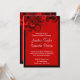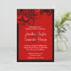 © Sunny Mars Designs - Hibiscus floral : Rouge foncé sur rouge 5" x 7" Mariage Dîner Invitations - Personnalisable chic, moderne, tendance, élégant, élégant, élégant dîner de répétition mariage invitations avec rouge foncé, cramson, bordeaux, rubis ou maroon tourbillonnant hibiscus tropical design contre un arrière - plan rouge vif.