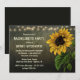 Rustic String Lights Sunflower Bachelorette Party Invitations - présente un arrière - plan rustique avec des lampes à cordes et un tournesol. Le texte présente une police rustique taillée comme une police pour les noms et la douche nuptiale.