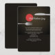 Un design minimaliste montrant un couteau et une fourchette sur fond noir. Un point rouge gras indique le nom du diplômé. (FP). <br/>() La carte est facile à customiser avec votre libellé, police, couleur de police et choix de six types de papier.<br/>() Pas exactement ce que vous cherchez? Tous nos produits peuvent être conçus sur mesure pour répondre à vos besoins sans frais supplémentaires.<br/>() Il suffit de nous contacter à askpixieprints@aol.com . (a) (b) Coordonner les produits disponibles :
