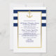 Elégante carte d'invitation marine bleu et blanc rayé. L'ancrage or avec cadre en feuille d'or ajoute cette touche de classe supplémentaire. Modèles personnalisés pour que vous puissiez facilement do-it-yourself et ajouter/modifier avec vos propres informations. Idéal pour tous les événements nautiques à thème.