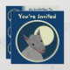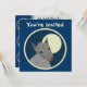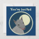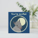 Cartes bilatérales faites sur commande d'invitation. L'avant a personnalisable "vous sont invités". Le dos a l'information d'invitation--entrez votre titre d'événement, date, temps, emplacement, et un message personnel. Loup velu de style "empaquetez coupe-circuit" contre une pleine lune, dans un cercle encadré. Conception animale d'amusement.