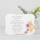 Une invitation enchanteresse avec trois délicates fleurs d'aquarelle dans les tons prune et rose avec des feuilles dorés. En vedette sur papier en lin avec forme de crochet. Vous voulez économiser de l'argent ? Imprimez cette invitation de la forme Papier de base et du coin Carré de base.