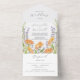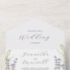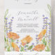 Ces invitations de mariage triplées présentent des fleurs sauvages d'aquarelle botanique en lavande, orange et vert sauge. Un choix boho chic pour les mariages de jardin de printemps et d'été. Pour voir d'autres motifs floraux et des invitations pliés, visitez www.zazzle.com/dotellabelle Art unique et design de Victoria Grigaliunas de Do Tell A Belle.