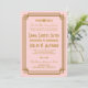 Ces invitations de mariage sont assorties d'une palette de couleurs rose et or, d'un cadre géométrique et d'autres détails stylistiques inspirés de l'Art Déco et des années folles. Vous pouvez customiser les champs de texte d'exemple à votre convenance.