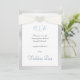 Belles cartes de faire-part de mariage blanches d'hiver au coeur brillant, décorées de larges faux ruban et d'accents bleus et argentés. Autres tailles et styles disponibles avec les timbres de poste correspondants et les enveloppes personnalisées.