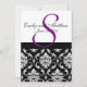 Invitation Mariage damassé avec Monogramme violet. Conception de la disposition par Elke Clarke © 2009. Graphiques sous licence pour use.com et WhiteWhimsicalWeddings.blogspot.com. Customisez avec vos noms monographiques et couleurs mariages. Ajoutez toutes vos informations mariages au verso de la carte en utilisant les invites de menu faciles à utiliser de Zazzle.
