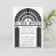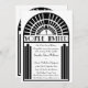 Une invitation de mariage classique et vintage en noir et blanc gras. Un graphisme Art Déco stylisé incorporant un parasol, un cadre et de grands panneaux décorent ce design saisissant et une silhouette d'une mariée et de son marié à l'ombre grise et faible complète l'image. L'Art déco était un style populaire dans les années 1920, 1930 et 1940. La couleur arrière - plan de cette invitation peut être changée en n'importe quelle couleur que vous choisissez via les options "customiser".