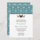 Ce motif élégant et tendance papillon et damas floral en brun turquoise et chocolat ajoute une touche de fantaisie à ces invitations de mariage avec une police marron foncé et turquoise assortie. Studios, LLC.