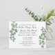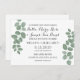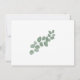 Belle invitation présente des feuilles d'eucalyptus vert frais sur arrière - plan blanc propre à l'avant et à l'arrière. Parfait pour les mariage à thème printemps, été, extérieur ou verdoyant.