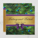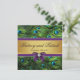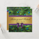 Purple & Gold Peacock Feather Wedding Invitations — présente un arrière - plan imprimé en plumes de paon vert. Une bande d'or imprimée taillée dans le violet grace l'avant et l'arrière. L'avant comporte également un arc imprimé assorti d'une embellie de diamants. Ces invitations à des mariages de paons sont réglées sur un stock de carte de base de haute qualité; cependant, vous pouvez changer le stock en lin, feutre (gaufré), recyclé et plusieurs teintes métalliques si vous voulez sous le numéro 2 (choisissez votre style, votre taille et votre type de papier) sous le bouton orange ajouter au chariot. Une liste des coûts supplémentaires pour un stock de carte de crédit s'affiche également sous cette option. Chaque invitation est accompagnée d'une enveloppe blanche.