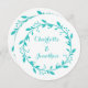 Cartes de Faire-part de mariage en motif de couronnes florales dessinées à la main de façon rustique et bleu turquoise. Customisez ces invitations avec vos coordonnées mariages. Disponible dans des produits assortis pour tous vos besoins mariages.
